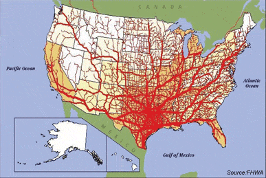 Item 5 from above is of particular interest. It would be a hard sell to insist all container ships be American-operated. However, it’s rather galling that the government started allowing Mexican trucks to ship cargo inside the USA, to cut American truck drivers out of their piece of the action. To facilitate NAFTA imports, the federal government spent taxpayer money to build Interstate 69 (quite a symbolic number).